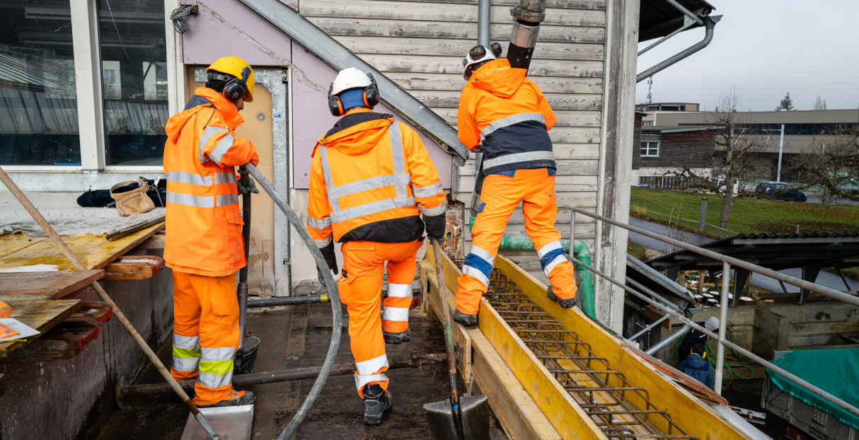 Wir führen vielseitige Kundenarbeiten und arbeiten meistens im Team. Schlechtes Wetter hält uns nicht vom Arbeiten ab.