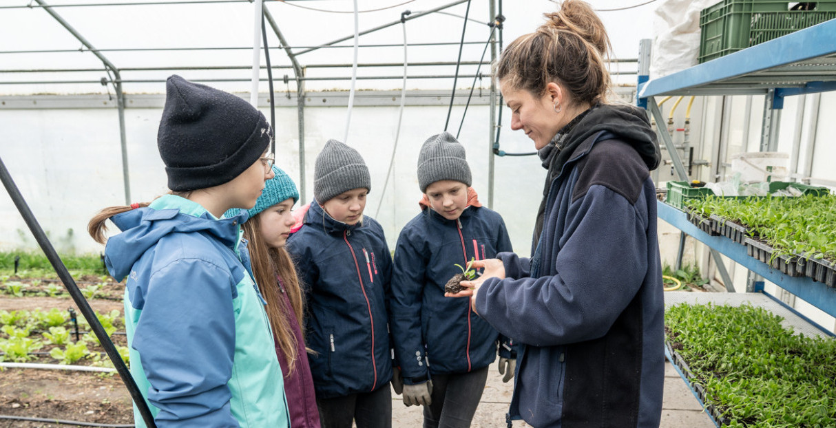 Zukunftstag 2023 in der Bächtelen - acht aufgestellte und interessierte Kinder tauschten am Zukunftstag 2023 die Schulbank gegen ein Naturerlebnis auf dem Gemüsefeld. Neben der theoretischen Einführung in den abwechslungsreichen Beruf als Gemüsegärtner:in, legten die Kinder natürlich auch selber Hand an. Sie setzten im Folienhaus Spinat und führten saisonale Pflegearbeiten an unseren Kulturen durch. Wir danken herzlich für den Besuch und den gelungenen Tag – es hat mega ‚gfägt‘!